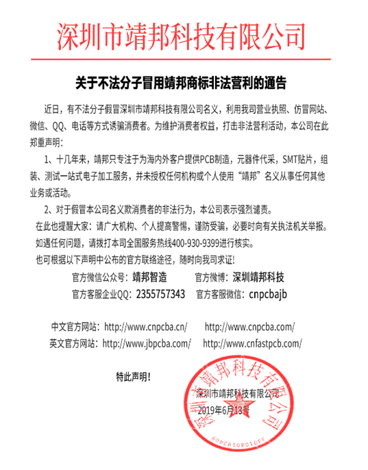 近日,我司收到网上众多消费者的反馈,有不法分子假冒靖邦的名义,盗用我司营业执照,在市场进行非法营利,也有在咸鱼等一些二手交易平台售卖廉价苹果手机以及周边产品,并且在平台外交易来欺骗消费者。为维护广大消费者的个人利益、财产安全及我司的良好形象和合法权益,...